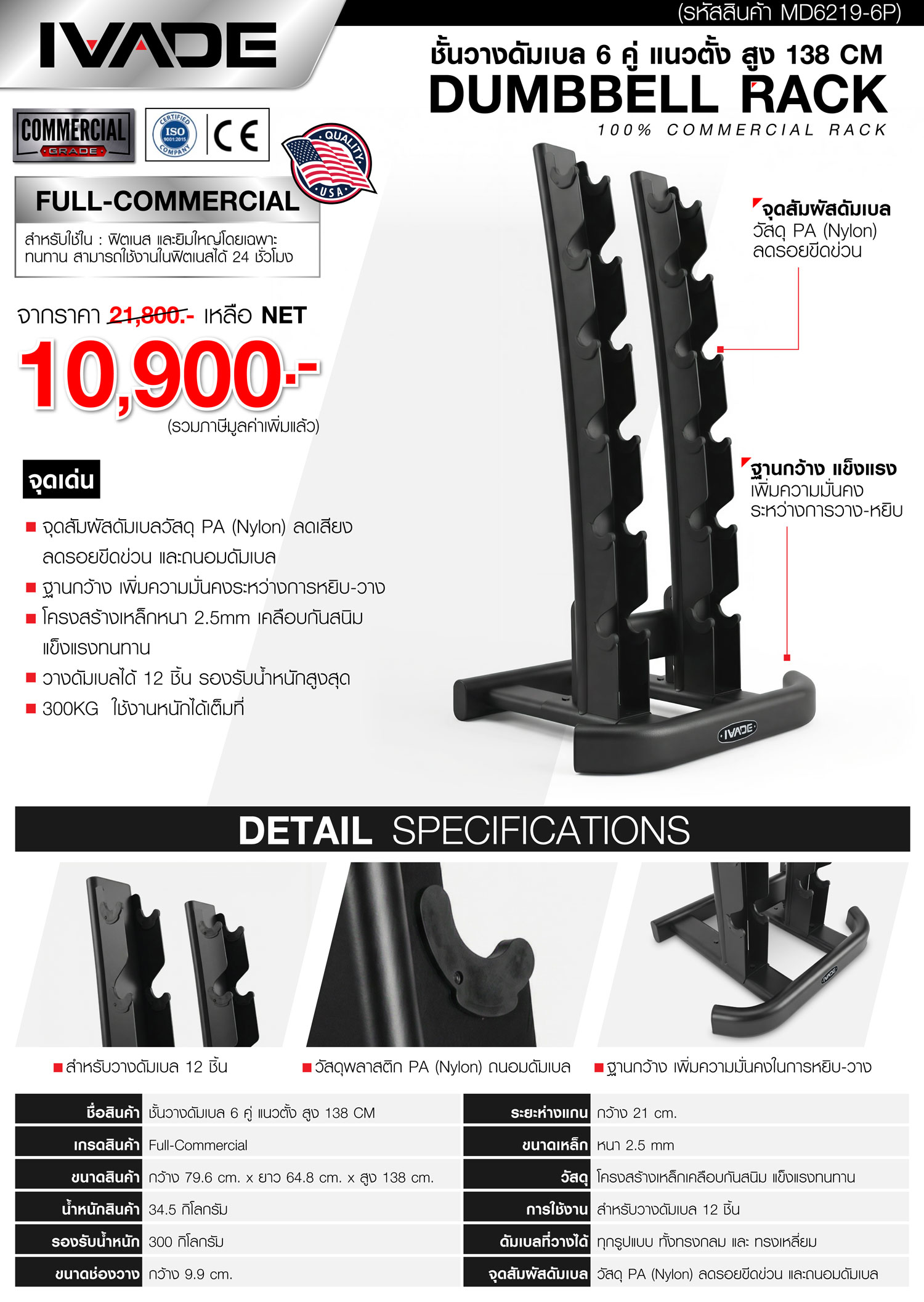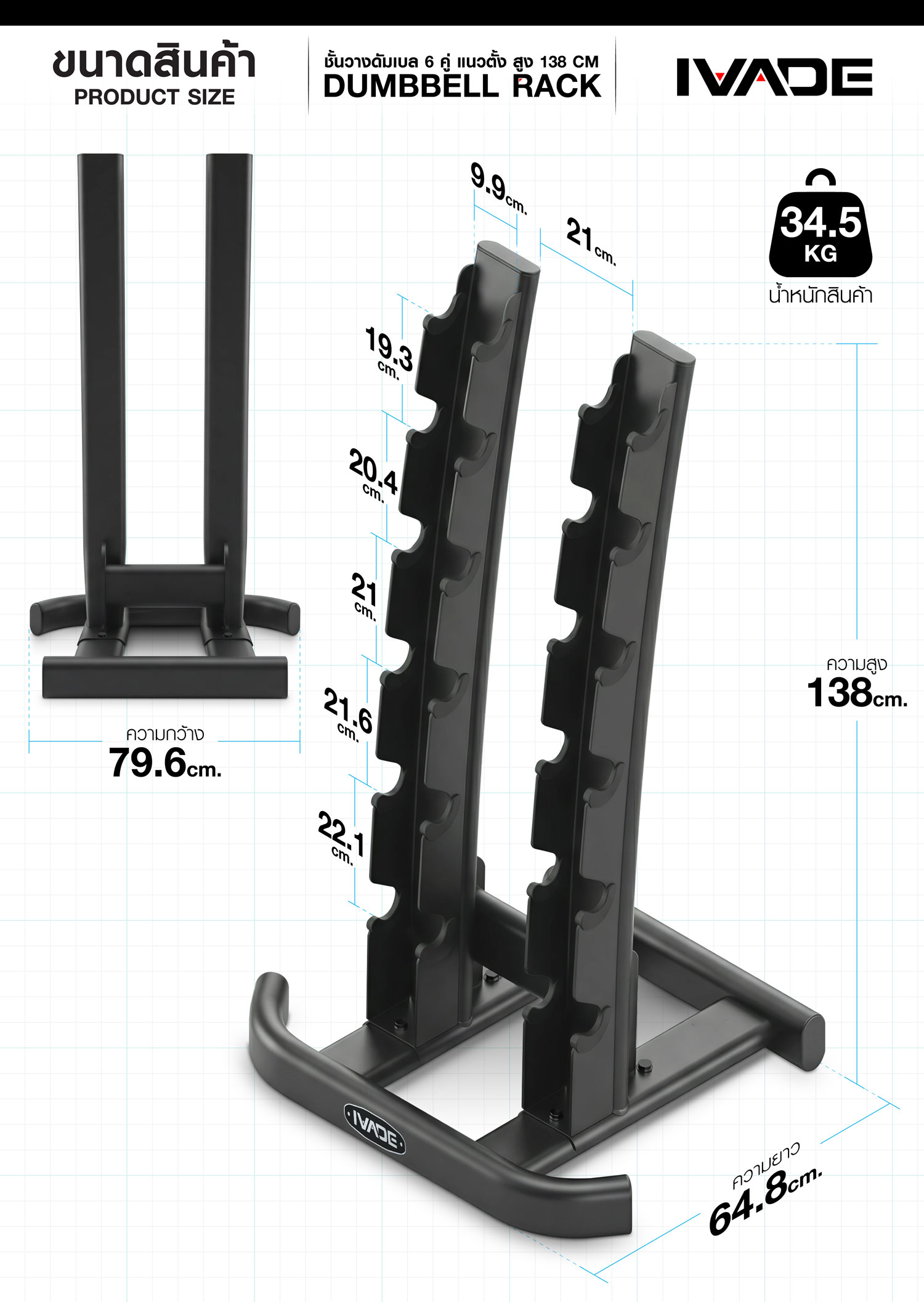 ชั้นวางดัมเบล 6 คู่ แนวตั้ง สูง 138CM IVADE (MD6219-6P)