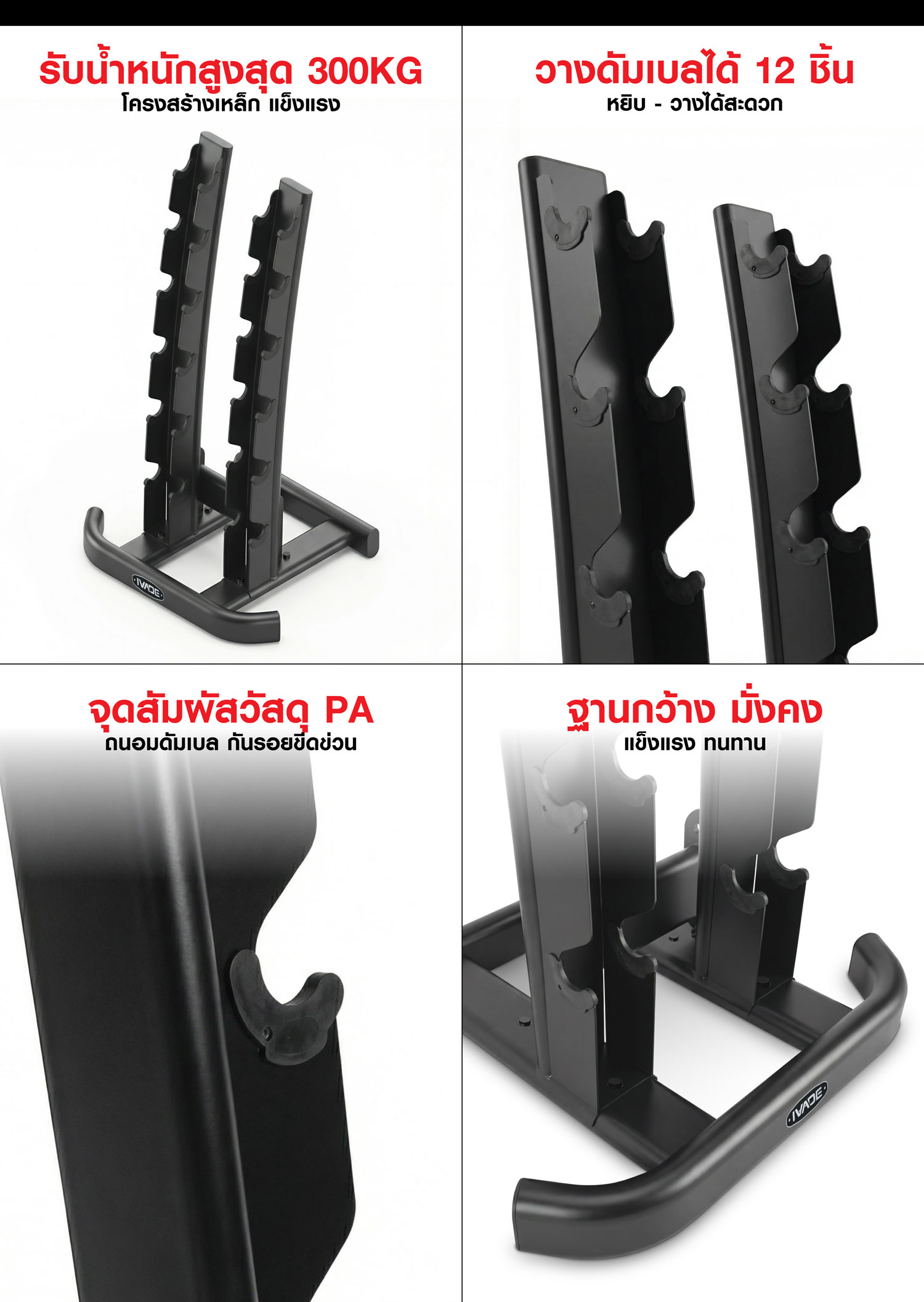 ชั้นวางดัมเบล 6 คู่ แนวตั้ง สูง 138CM IVADE สินค้าใหม่ จุดเด่น จุดสัมผัสดัมเบลวัสดุ PA (Nylon) ลดเสียง ลดรอยขีดข่วน และถนอมดัมเบล ฐานกว้าง เพิ่มความมั่นคงระหว่างการหยิบ-วาง วางดัมเบลได้ 12 ชิ้น รองรับน้ำหนักสูงสุด 300KG ใช้งานหนักได้เต็มที่