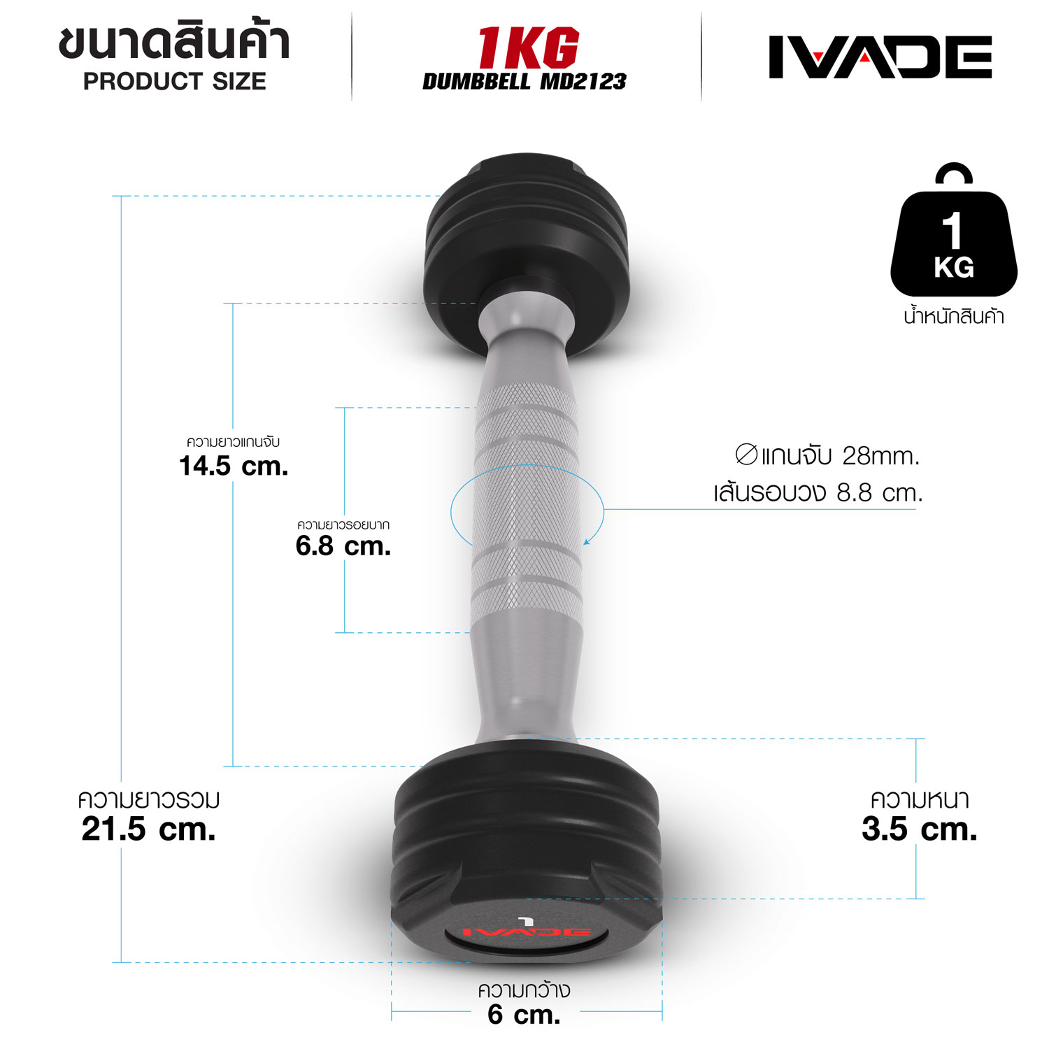 ดัมเบล STUDIO หุ้มยาง IVADE ขนาด 1KG x 2 ชิ้น สินค้าใหม่ เกรดสินค้า FULL-Commercial ยางคุณภาพสูง ไม่แตกร้าวง่าย แกนกลาง เหล็กหล่อเต็มก้อน ด้ามจับ กลึงด้วยเครื่อง CNC ความแม่นยำสูง กัดลายลาย Knurling ไม่บาดมือแต่ไม่ลื่น วัสดุด้ามจับ เคลือบโครเมียมแข็ง (Hard Chrome Finish) ทนทานต่อการกัดกร่อนและรอยขีดข่วน