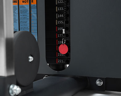 ใช้แผ่นน้ำหนักเหล็กหล่อความหนาแน่นสูง เคลือบด้วยผงสีดำเนื้อด้านพรีเมียม ป้องกันการสึกหรอและการกัดกร่อน น้ำหนักปรับสมดุลอย่างแม่นยำ รองรับสูงสุดถึง 125 กิโลกรัม ช่วยให้ผู้ใช้เลือกน้ำหนักที่เหมาะสมที่สุดโดยไม่ลดประสิทธิภาพการฝึก
