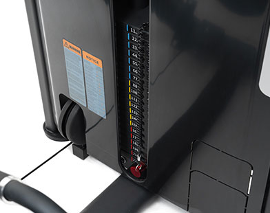 ใช้แผ่นน้ำหนักเหล็กหล่อความหนาแน่นสูง เคลือบด้วยผงสีดำเนื้อด้านพรีเมียม ป้องกันการสึกหรอและการกัดกร่อน น้ำหนักปรับสมดุลอย่างแม่นยำ รองรับสูงสุดถึง 125 กิโลกรัม ช่วยให้ผู้ใช้เลือกน้ำหนักที่เหมาะสมที่สุดโดยไม่ลดประสิทธิภาพการฝึก