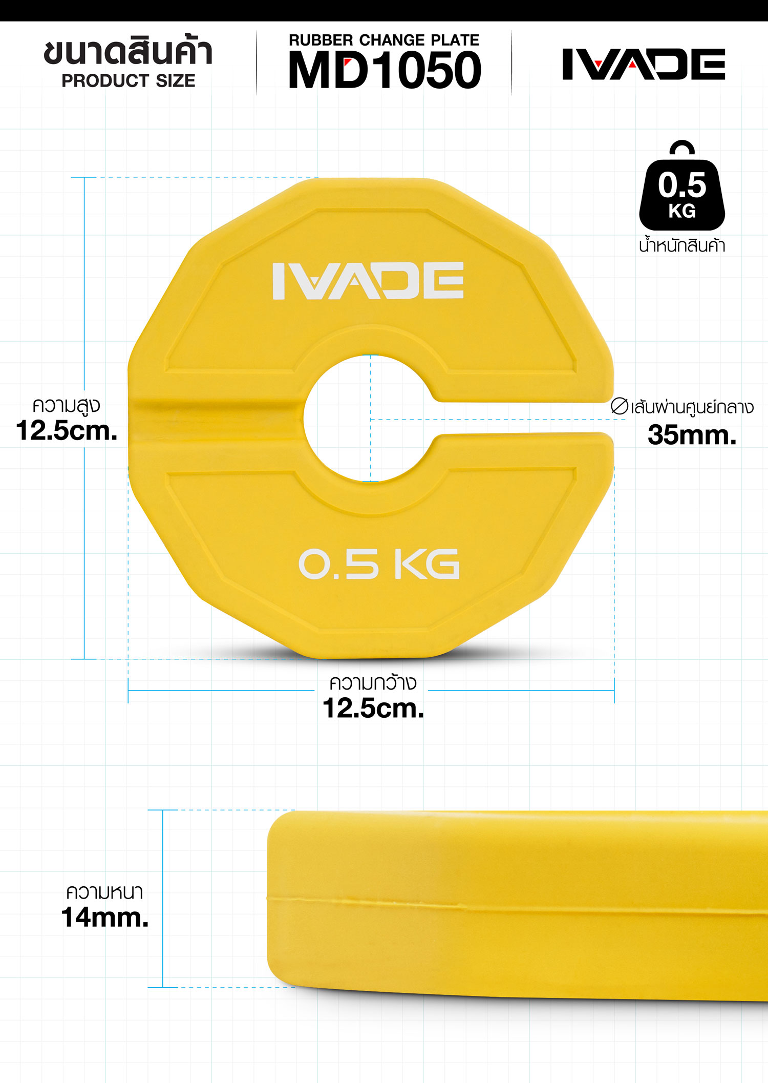 แผ่นน้ำหนัก Rubber Change Plate 0.5KG x 2 ชิ้น (MD1050)