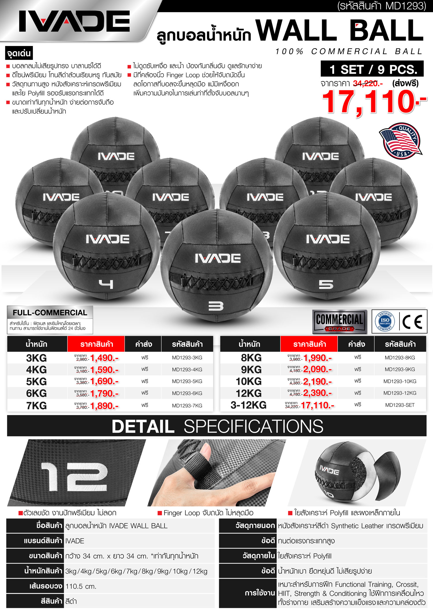 ลูกบอลน้ำหนัก IVADE WALL BALL 12KG เกรดสำหรับใช้ใน ฟิตเนส และยิมใหญ่โดยเฉพาะ ดีไซน์พรีเมียม โทนสีดำล้วนเรียบหรู ทันสมัย บอลกลมไม่เสียรูปทรง บาลานซ์ได้ดี วัสดุทนทานสูง หนังสังเคราะห์เกรดพรีเมียม และใย Polyfill รองรับแรงกระแทกได้ดี เส้นรอบวง 110.5 cm มีที่คล้องนิ้ว Finger Loop ช่วยให้จับถนัด ไม่หลุดมือ ขนาดของสินค้า 34x34cm (กว้างxยาว)